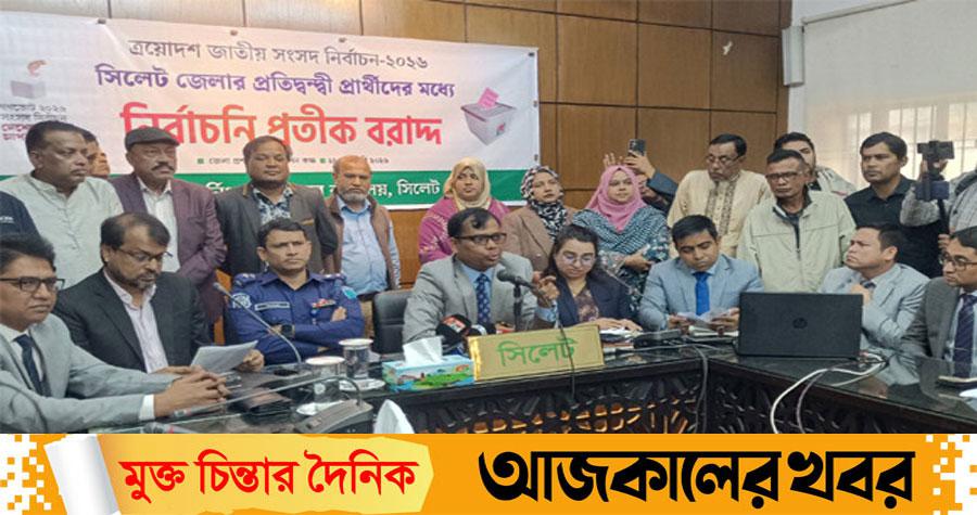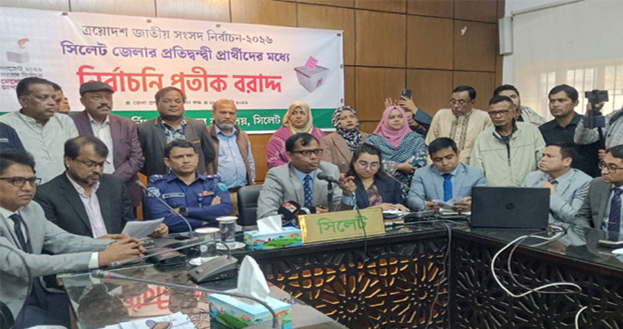 বুধবার সকাল সাড়ে ১০টায় সিলেট জেলা প্রশাসক ও রিটার্নিং কর্মকর্তা মো. সারওয়ার আলম সিলেট জেলা রিটার্নিং কর্মকর্তার কার্যালয়ে আনুষ্ঠানিকভাবে প্রার্থীদের হাতে প্রতীক তুলে দেন।