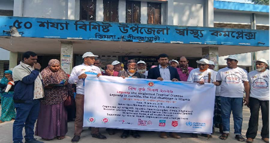 নীলফামারীর ডিমলায় বিশ্ব কুষ্ঠ দিবস ২০২৬ উপলক্ষে সচেতনতামূলক র্যালি ও আলোচনা সভা অনুষ্ঠিত হয়েছে।