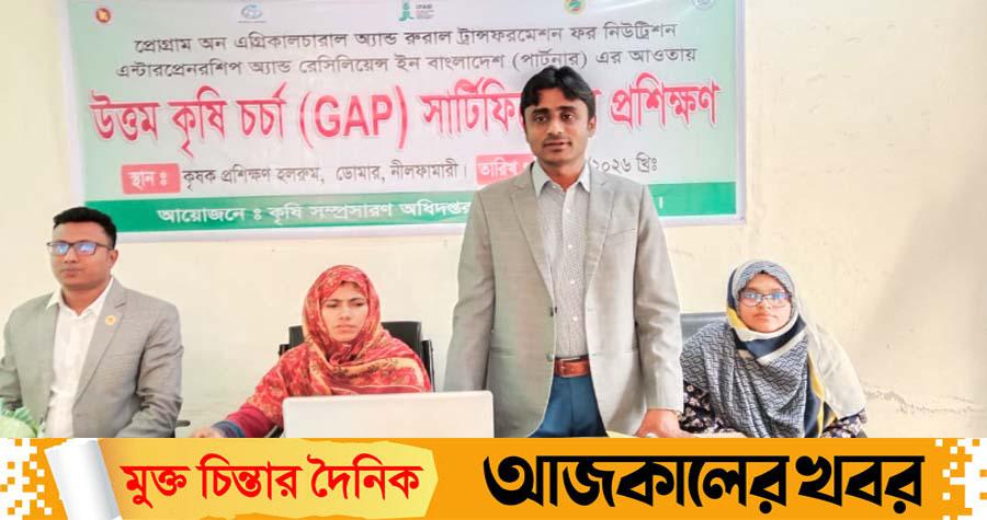 নীলফামারী জেলার ডোমার উপজেলায় উত্তম কৃষি চর্চা (গুড অ্যাগ্রিকালচারাল প্র্যাকটিসেস—GAP) সার্টিফিকেশন বিষয়ে প্রশিক্ষণ কর্মশালা অনুষ্ঠিত হয়েছে।