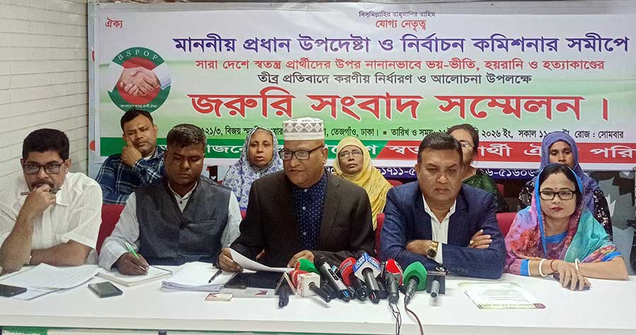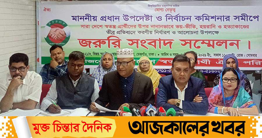 রাজধানীর তেজগাঁও বিজয় সরণি টাওয়ার, এ ২৬ জানুয়ারি ২০২৬, সোমবার সকালে বাংলাদেশ স্বতন্ত্র প্রার্থী ঐক্য পরিষদের আয়োজিত জরুরী সম্মেলনে তিনি এ দাবি জানান।