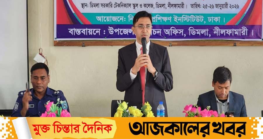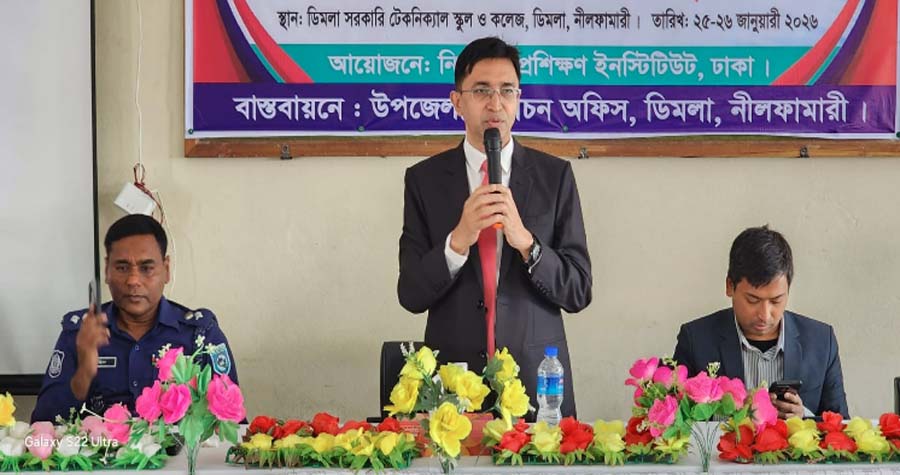 উপজেলা নির্বাচন অফিসের আয়োজনে এবং উপজেলা প্রশাসনের সহযোগিতায় রবিবার (২৫ জানুয়ারি) ডিমলা সরকারি টেকনিক্যাল স্কুল অ্যান্ড কলেজে এ কর্মশালা অনুষ্ঠিত হয়। কর্মশালায় সভাপতিত্ব করেন উপজেলা নির্বাহী অফিসার ইমরানুজ্জামান।