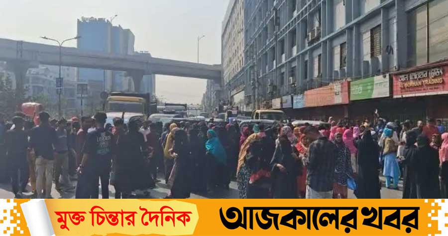 প্রাপ্য সার্ভিস বেনিফিট পরিশোধের দাবিতে রাজধানীর বিমানবন্দর-মহাখালী রুটের আউটগোইং সড়ক অবরোধ করেছে একটি পোশাক কারখানার শ্রমিকেরা।