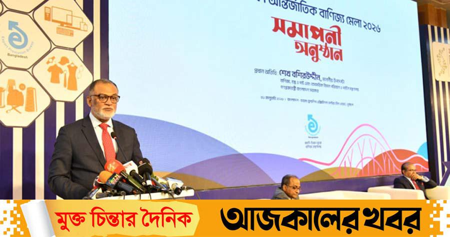 শনিবার (৩১ জানুয়ারি) রাজধানীর পূর্বাচলে বাংলাদেশ-চায়না ফ্রেন্ডশিপ এক্সিবিশন সেন্টারে ৩০তম ঢাকা আন্তর্জাতিক বাণিজ্যমেলার সমাপনী অনুষ্ঠানে তিনি এ তথ্য জানানো হয়।