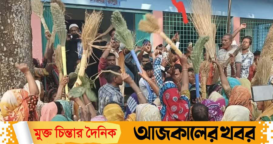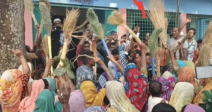 পরে শিক্ষার্থীরা বিষয়টি প্রতিষ্ঠানের প্রধান শিক্ষক আব্দুল ওয়াদুদকে জানালে অন্য শিক্ষকরাও জেনে যায়। ধীরে ধীরে এ খবরটি এলাকায় ছড়িয়ে পড়লে স্থানীয় বিএনপির নেতাকর্মীসহ ধানের শীষের কর্মী ও সমর্থকরা স্কুল মাঠে জড়ো হয়ে  বিক্ষোভ শুরু করেন। ঝাড়ু হাতে নারীরাও অবস্থান নেন।