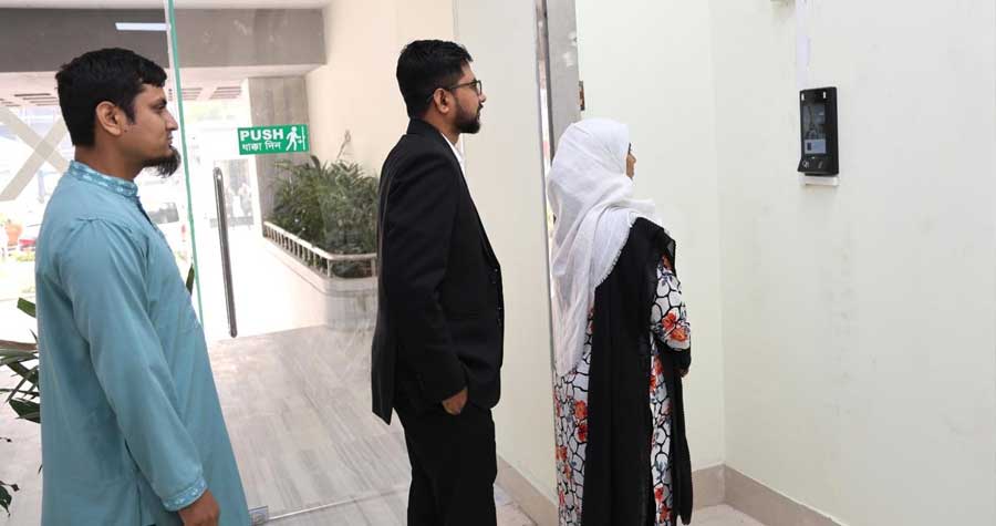 ডিজিটাল হাজিরা ব্যবস্থায় ZKTeco G4 Pro মাল্টি-বায়োমেট্রিক আইডেন্টিফিকেশন টার্মিনাল ব্যবহার করা হচ্ছে, যা ফেস রিকগনিশন, ফিঙ্গারপ্রিন্ট, RFID কার্ড ও পাসওয়ার্ডের মাধ্যমে ব্যবহারকারীর পরিচয় যাচাই করতে সক্ষম। ব্যবহারকারী ডিভাইসের সামনে দাঁড়িয়ে মুখ স্ক্যান, আঙুলের ছাপ বা কার্ড/পাসওয়ার্ড ব্যবহার করলে ডিভাইসের সফটওয়্যার সংরক্ষিত ডাটাবেজের সঙ্গে মিলিয়ে যাচাই সম্পন্ন করে। সফল যাচাই হলে উপস্থিতি রেকর্ড হয় এবং প্রয়োজনে প্রবেশাধিকার প্রদান করা হয়। এছাড়া মাসিক ভিত্তিতে হাজিরা রিপোর্ট সংগ্রহের সুবিধাও রয়েছে।