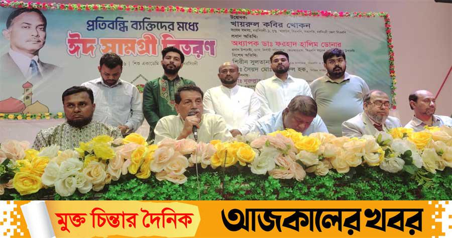 নরসিংদী জেলা শিশু একাডেমি মিলনায়তনে সোমবার (৩ মার্চ) দুপুরে বিভিন্ন বয়সী দেড়শত প্রতিবন্ধী ব্যক্তির পরিবারের মাঝে ঈদ সামগ্রী বিতরণ করেছে জিয়াউর রহমান ফাউন্ডেশন। এসব ঈদ সামগ্রী বিতরণ করা হয়, ডক্টরস এসোসিয়েশন অব বাংলাদেশ ড্যাবের আয়োজনে । বিতরণকৃত উপহার সামগ্রীর মধ্যে ছিল তেল, সেমাই, দুধ, চিনি, পোলাও চাল ও ডালসহ নিত্যপ্রয়োজনীয় ৯ প্রকারের খাদ্য সামগ্রী।