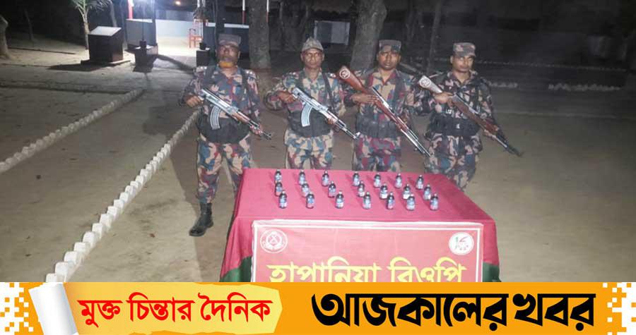 সাপাহার সীমান্তে ২১ বোতল ভারতীয় ফেন্সিডিল জব্দ করেছে বিজিবি