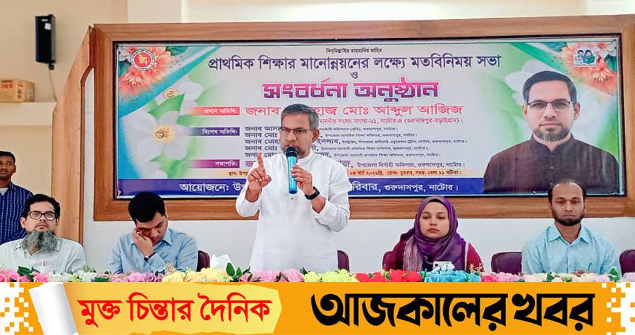 নাটোর-৪ (গুরুদাসপুর-বড়াইগ্রাম) আসনের সংসদ সদস্য মো. আব্দুল আজিজ প্রাথমিক শিক্ষকদের উদ্দেশ্যে বলেছেন, যতবড় অট্রালিকাই গড়ে তোলেন না কেন, তার আগে নিচুতলার ভিত্তি মজবুত করতে হবে। তা না হলে প্রাসাদ ধ্বংস হয়ে যাবে। তদ্রুপ শিক্ষিত জাতি গঠনে প্রাথমিক শিক্ষকরাই শ্রেষ্ঠ কারিগর।