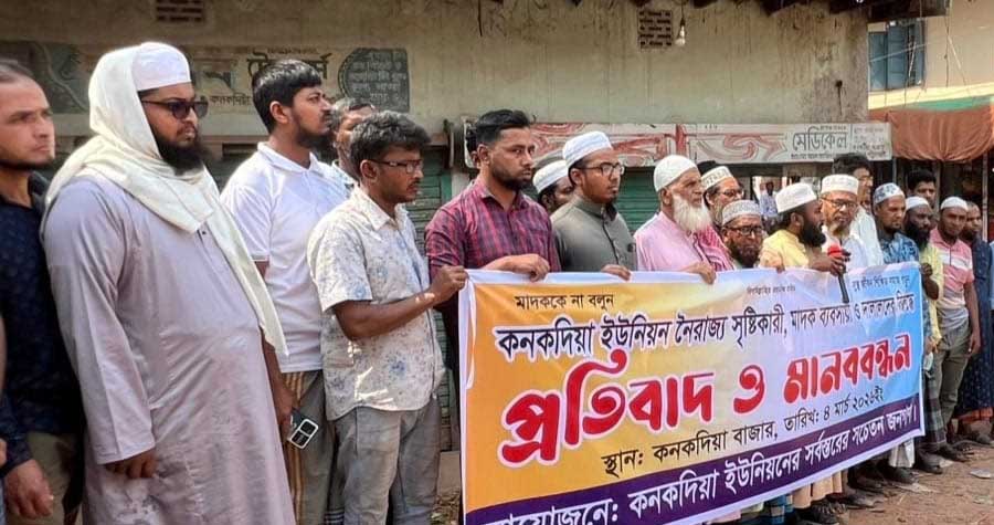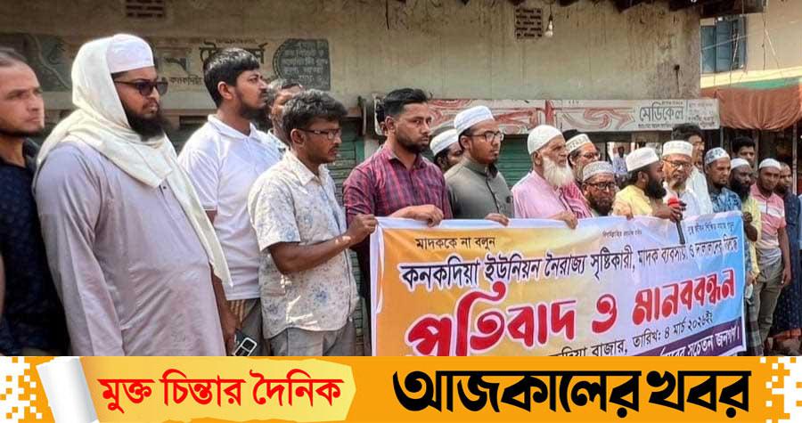 বুধবার (০৪ মার্চ) দুপুরে কনকদিয়া বাজার ব্রিজের ঢালে এ মানববন্ধনের আয়োজন করা হয়। এতে কনকদিয়া ইউনিয়নের বিভিন্ন শ্রেণি-পেশার মানুষ অংশগ্রহণ করেন।
