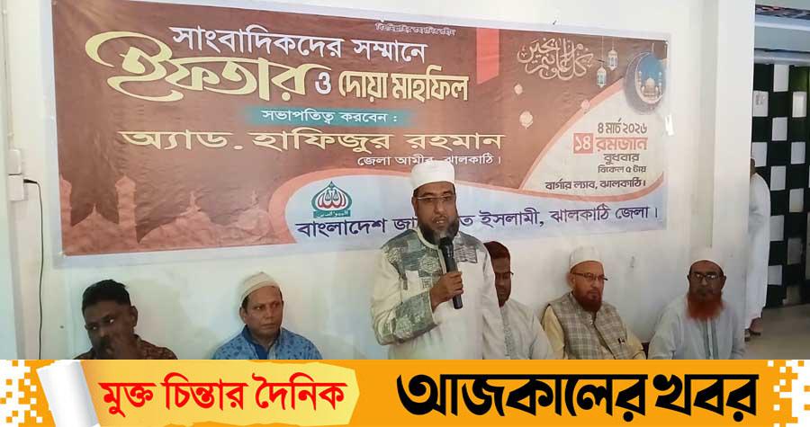 ঝালকাঠিতে সাংবাদিকদের সম্মানে ইফতার ও দোয়া মাহফিলের আয়োজন করেছে বাংলাদেশ জামায়াতে ইসলামী জেলা শাখা। বুধবার (৪ মার্চ) বিকাল ৫টায় শহরের বার্গার ল্যাব রেস্টুরেন্টে এ অনুষ্ঠিত হয়।