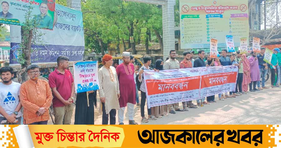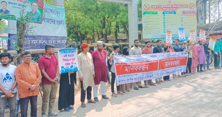 শনিবার (১৪ মার্চ) বেলা ১১টায় সাতক্ষীরা শহরের শহীদ আব্দুর রাজ্জাক পার্কের সম্মুখ সড়কে এ মানববন্ধনের আয়োজন করে সাতক্ষীরা সদর উপজেলা যুব পানি কমিটি।
