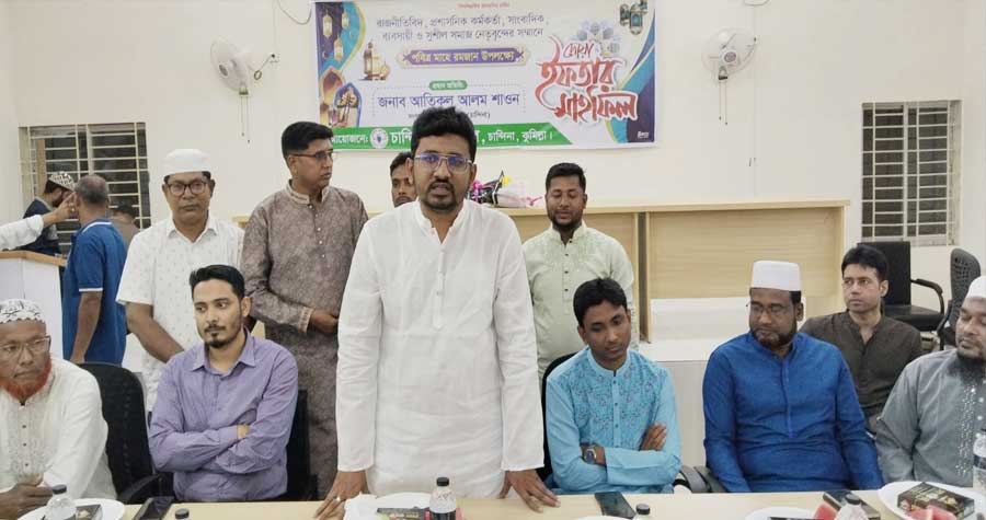 এ সময় বিভিন্ন রাজনৈতিক দলের নেতৃবৃন্দ, প্রশাসনের কর্মকর্তা, ব্যবসায়ী, সাংবাদিক ও সুশীল সমাজের প্রতিনিধিরা উপস্থিত ছিলেন। অনুষ্ঠান শেষে দেশ ও জাতির কল্যাণ কামনায় বিশেষ দোয়া অনুষ্ঠিত হয় এবং পরে ইফতার পরিবেশন করা হয়।