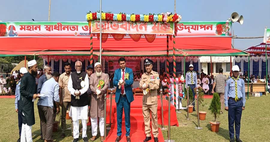 সকাল ৯টায় উপজেলা স্টেডিয়ামে আনুষ্ঠানিকভাবে জাতীয় পতাকা উত্তোলন, বেলুন ও কবুতর উড়িয়ে অনুষ্ঠানের সূচনা করেন উপজেলা নির্বাহী কর্মকর্তা মো. আল-আমীন। তিনি বিভিন্ন বাহিনীর সালাম গ্রহণ করেন। পরে কুচকাওয়াজ ও মনোমুগ্ধকর শরীরচর্চা প্রদর্শনী অনুষ্ঠিত হয়। এতে বিভিন্ন শিক্ষা প্রতিষ্ঠানের শিক্ষার্থী, স্কাউট ও গার্লস গাইড সদস্য, পুলিশ, আনসার ভিডিপি এবং ফায়ার সার্ভিস ও সিভিল ডিফেন্সের সদস্যরা অংশগ্রহণ করেন।