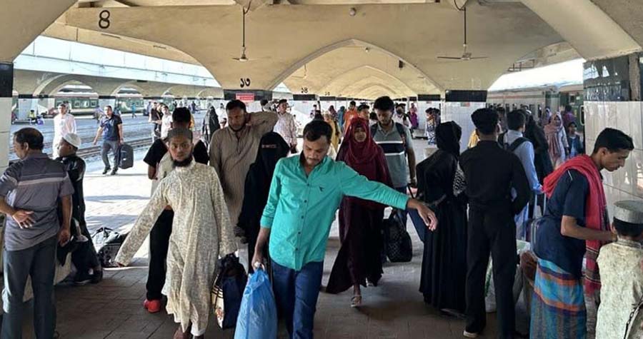 এবারের ঈদযাত্রায় ২৪ ও ২৫ মার্চ অফিস খোলা থাকলেও ২৬ মার্চ স্বাধীনতা দিবস এবং পরবর্তী দুই দিন সাপ্তাহিক ছুটি থাকায় অনেকেই অতিরিক্ত ছুটি নিয়ে গ্রামে গিয়েছিলেন। সেই ছুটির মেয়াদ শেষ হওয়ায় আজ শেষ মুহূর্তে স্টেশনে যাত্রীদের চাপে তিল ধারণের ঠাঁই ছিল না। অনেক ট্রেনের ভেতরে কানায় কানায় পূর্ণ থাকার পাশাপাশি জীবনের ঝুঁকি নিয়ে ছাদে চড়েও অনেককে ফিরতে দেখা গেছে।