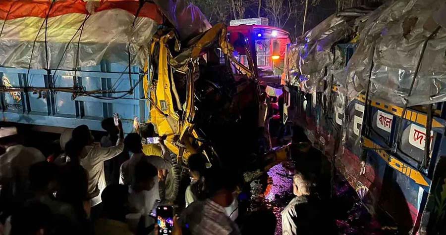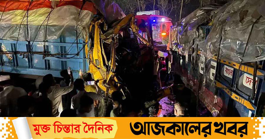 ঠিক ওই সময় পেছন থেকে আসা ঢাকাগামী এসআই পরিবহনের একটি যাত্রীবাহী বাস নিয়ন্ত্রণ হারিয়ে ট্রাকটির পেছনে ধাক্কা দেয়। ফলে ঘটনাস্থলে ত্রিমুখী সংঘর্ষের সৃষ্টি হয়।