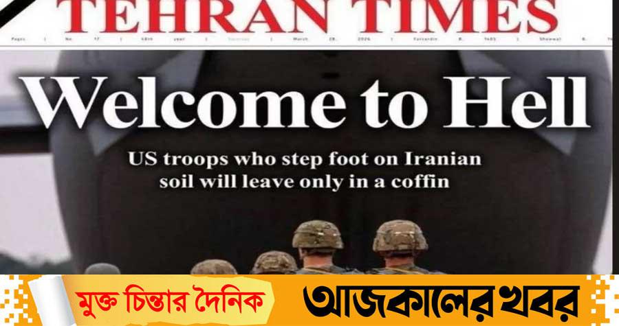 ইরানে সম্ভাব্য মার্কিন স্থল অভিযানের খবরের মধ্যে ওয়াশিংটনকে কঠোর হুঁশিয়ারি দিয়েছে তেহরান। ইরানের ইংরেজি দৈনিক ‘তেহরান টাইমস’-এর প্রথম পাতায় ‘নরকে স্বাগতম’ (Welcome To Hell) শিরোনামে একটি প্রতিবেদন প্রকাশিত হয়েছে। সেখানে সাফ জানানো হয়েছে, কোনো মার্কিন সেনা যদি ইরানের মাটিতে পা রাখে, তবে তারা কেবল ‘কফিনে’ বন্দি হয়েই ফিরবেগত শুক্রবার মার্কিন সংবাদমাধ্যমে খবর ছড়িয়ে পড়ে যে, মধ্যপ্রাচ্যে অতিরিক্ত ১০ হাজার সেনা মোতায়েনের কথা ভাবছে যুক্তরাষ্ট্র। এই খবরটি আসার পরপরই তেহরানের পক্ষ থেকে এমন চরম বার্তা দেওয়া হলো।