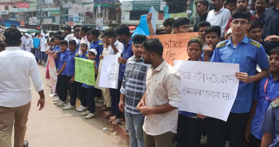 মঙ্গলবার (৩১ মার্চ) সকাল ১০টায় সোনার বাংলা ফাউন্ডেশন স্কুলের প্রতিষ্ঠাতা তাজুল ইসলামের সভাপতিত্বে দেবীদ্বার নিউমার্কেট স্বাধীনতা চত্বরে এ মানববন্ধন ও বিক্ষোভ সমাবেশ অনুষ্ঠিত হয়।