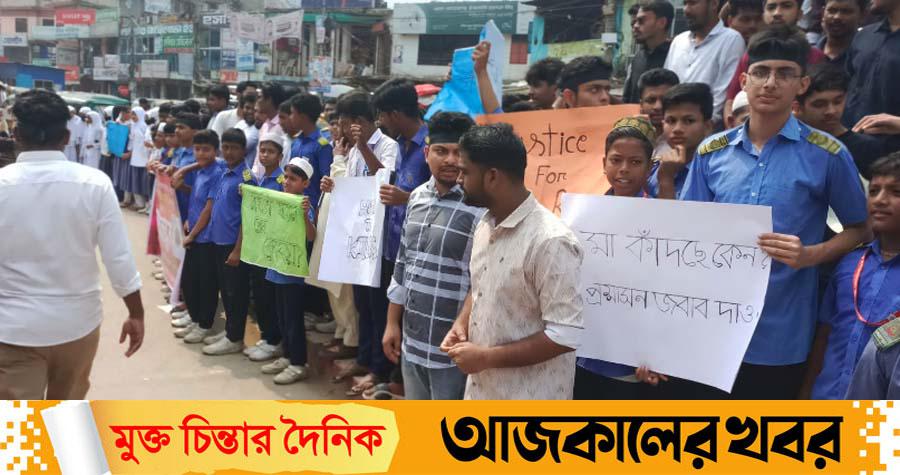 কুমিল্লা দেবীদ্বার অক্সফোর্ড ইন্টারন্যাশনাল স্কুল এন্ড কলেজের ১৯ ব্যাচের শিক্ষার্থী ও সিদ্ধেশ্বরী কলেজের ফিনান্স বিভাগের ২য় বর্ষের ছাত্র মো. সাদমান সাইফ রাইভির হত্যাকারীদের ফাঁসির দাবিতে মানববন্ধন ও বিক্ষোভ সমাবেশ করেছে দেবীদ্বার অক্সফোর্ড, সোনার বাংলা ও ক্যামব্রিয়ান স্কুলের ছাত্র- ছাত্রী ও শিক্ষকমন্ডলীসহ স্থানীয় এলাকাবাসী।