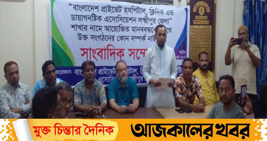 লক্ষ্মীপুরে প্রাইভেট হাসপাতাল ক্লিনিক অ্যান্ড ডায়াগনস্টিক অ্যাসোসিয়েশনের সংবাদ সম্মেলন