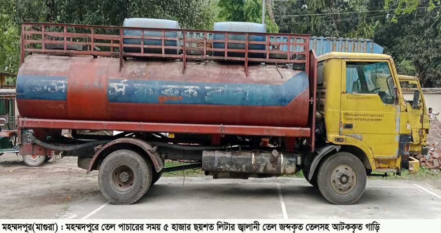 মাগুরা জেলার মহম্মদপুর উপজেলার চর জাঙ্গালিয়া এলাকা থেকে তেল পাচারের সময় ৫৬০০ লিটার জ্বালানি তেল জব্দ করেছে উপজেলা প্রশাসন। এ সময় গাড়ির ড্রাইভার সোহরাব (৪৩) কে আটক করে মহম্মদপুর থানা পুলিশ।