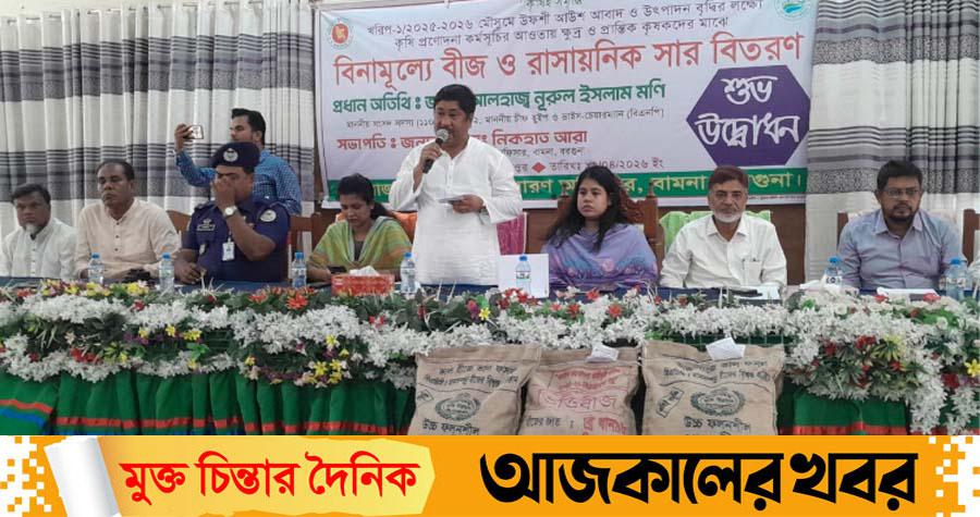 বরগুনার বামনা উপজেলায় কৃষি প্রণোদনা কর্মসূচির আওতায় ৫ হাজার প্রান্তিক ও ক্ষুদ্র কৃষকদের মাঝে বিনামূল্যে রাসায়নিক সার ও বীজ বিতরণ করা হয়েছে।