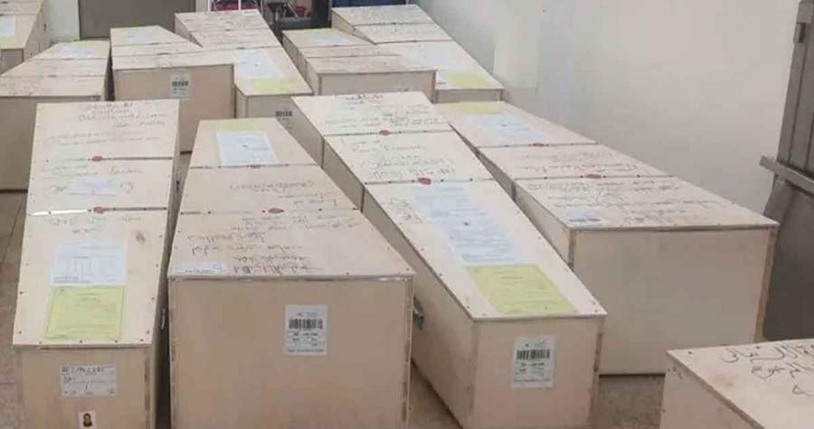 শনিবার (১৮ এপ্রিল) সন্ধ্যায় কুয়েত এয়ারলাইনসের একটি বিশেষ চার্টার্ড ফ্লাইটে ৩০ জন প্রবাসীর মরদেহ ঢাকার হযরত শাহজালাল আন্তর্জাতিক বিমানবন্দর-এ পৌঁছায়। প্রবাসী কল্যাণ ডেস্কের উপ-পরিচালক শরিফুল ইসলাম কালবেলাকে এ তথ্য নিশ্চিত করেছেন।