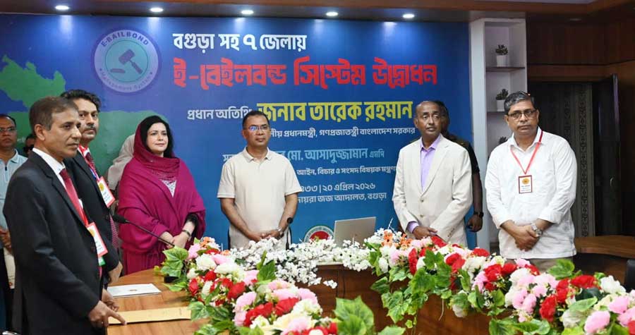 বগুড়ায় সফররত প্রধানমন্ত্রী তারেক রহমান জজ আদালতে ই-বেইল বন্ড সেবার আনুষ্ঠানিক উদ্বোধন করেছেন।