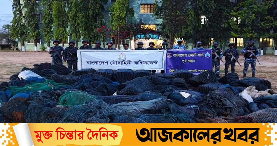 চট্টগ্রামের কর্ণফুলীতে যৌথ অভিযানে প্রায় ৩১২ কোটি টাকা মূল্যের বিপুল পরিমাণ অবৈধ জাল জব্দ করেছে কোস্ট গার্ড।