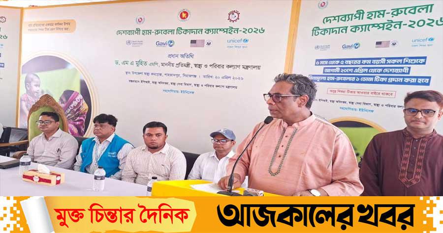 সোমবার (২০ এপ্রিল) সকাল ১০ টায় সিরাজগঞ্জের শাহজাদপুর উপজেলা স্বাস্থ্য কমপ্লেক্সে হাম-রুবেলার টিকাদান কর্মসূচি-২০২৬ এর উদ্বোধন শেষে তিনি একথা বলেন।
