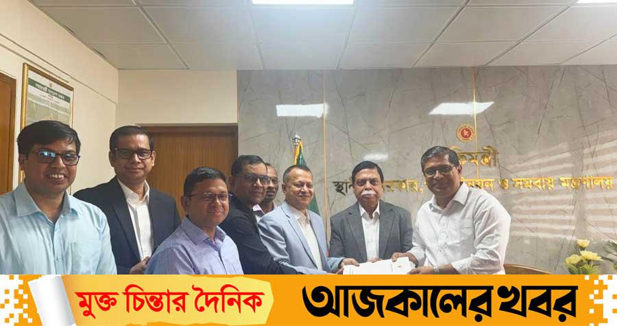 গাজীপুর সিটি কর্পোরেশনের ০১-৫নং জোনের অভ্যন্তরীণ রাস্তা, নর্দমা ও ফুটপাত নির্মাণ প্রকল্পের আওতায় কাশিমপুর নামাবাজার থেকে ধনঞ্জয়খালী প্রাইমারি স্কুল পর্যন্ত নবনির্মিত রাস্তার রিটেইনিং ওয়ালসহ প্রায় ৫০ মিটার অংশ ধসে যাওয়ার ঘটনায় গঠিত অধিকতর তদন্ত প্রতিবেদন আজ স্থানীয় সরকার, পল্লী উন্নয়ন ও সমবায় মন্ত্রণালয়ের প্রতিমন্ত্রী Mir Shahe Alam-এর নিকট আনুষ্ঠানিকভাবে হস্তান্তর করা হয়েছে। এসময় স্থানীয় সরকার বিভাগের সচিব মোঃ শহীদুল হাসান উপস্থিত ছিলেন।