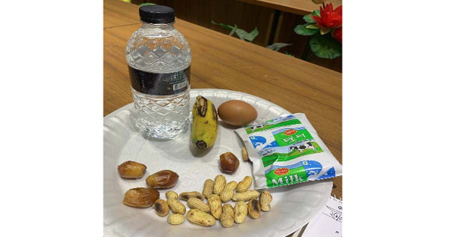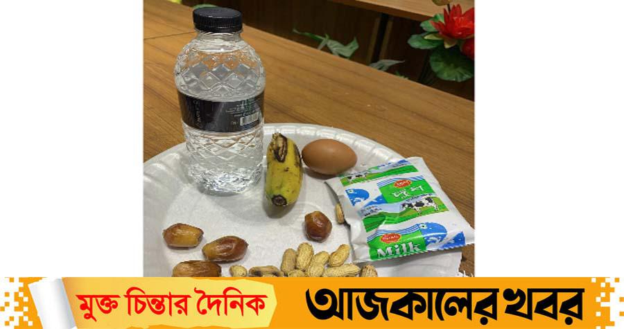 তিনি বলেন, পরিবেশিত নাস্তার তালিকায় বিদেশ থেকে আমদানি করা ফর্মালিনযুক্ত খেজুর, প্রক্রিয়াজাতকৃত প্রাণ প্যাকেট দুধ এবং কার্বাইডযুক্ত কলা পরিবেশন করা নিয়ে প্রশ্ন তুলেন। এ ছাড়াও ওই তালিকায় সঙ্গে বোতলজাত মাম পানি এবং বাদাম পরিবেশন করা হয়।