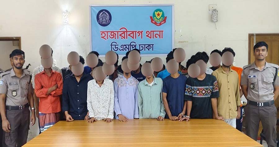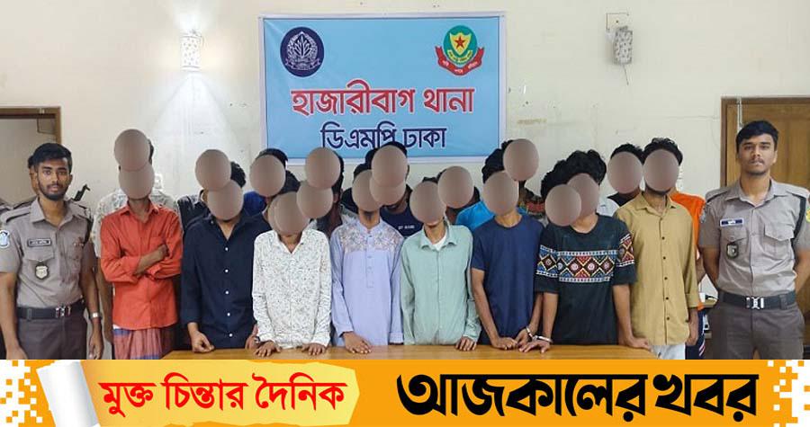 গ্রেপ্তার ব্যক্তিরা হলেন- মো. সবুজ (২০), মো. আবু তাহের (২৪), মো. জাহিদ (৩৩), মো. আরিফ (২৬), মো. কবির (২২), মো. রকি মিয়া (২৭), আরিফুল ইসলাম ওরফে রাফি (২৪), মো. বাবু (২৩), মো. রাকিব (১৯), মো. ফয়সাল আহলদ (২০), কালু শেখ (৫১), স্বপন রবি দাস (৩০), নূরনবী ওরফে নূর মিয়া (২৬), মো. রফিক (২১), মো. সাব্বির হাওলাদার (২৪), নাজমুল হোসেন (২৬), মো. বশিব (৪৮), মো. তারেক (২৪), মো. জুয়েল (২২), ফরহান ইসলাম শিহাব (১৯), তোফাজ্জল হোসেন মানিক (৩০), সামিউল বাশার অনিক (৩১), তামিম হক (২১), আরিফুর রহমান (৩০), সাব্বির হোসেন (২৩), রাইতুল ভূইয়া ওরফে অমিত (২২), শেখ মাহমুদ হাসান ওরফে সজল (৩৫) এবং মো. শাহ আলম সেলিম (৪৭)।