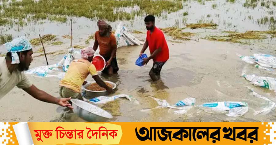 অতিবৃষ্টির কারণে শুধু জমিই নয়, ধান শুকানোর খলাতেও পানি জমেছে। এতে ধান মাড়াই ও সংরক্ষণেও দেখা দিয়েছে চরম ভোগান্তি।