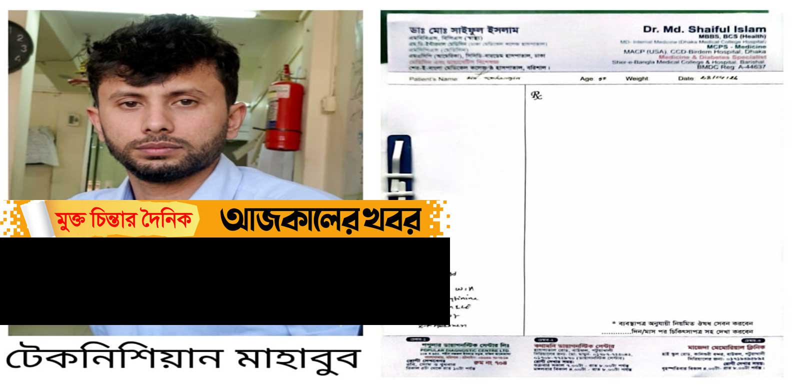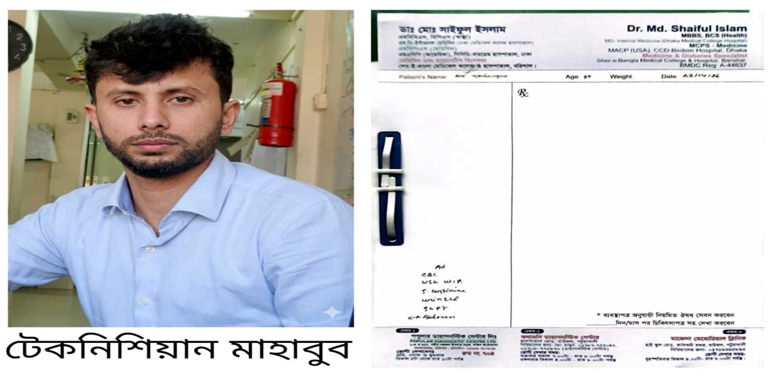 এমনই ঘটনা ঘটেছে পটুয়াখালীর বাউফল উপজেলা স্বাস্থ্য কমপ্লেক্সের মূল ফটকের সামনে ঠিক কুড়ি ফুট দূরত্বে কথামনি ডায়াগনস্টিক সেন্টারে। মঙ্গলবার (২৮ এপ্রিল) বেলা ৩টার এমন ঘটনা ঘটেছে।