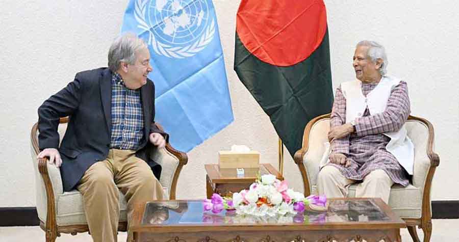 সাক্ষাৎকালে ড. ইউনূস গুতেরেসকে স্বচ্ছ, অবাধ ও অংশগ্রহণমূলক নির্বাচন আয়োজনের প্রতিশ্রুতি পুনর্ব্যক্ত করেন।