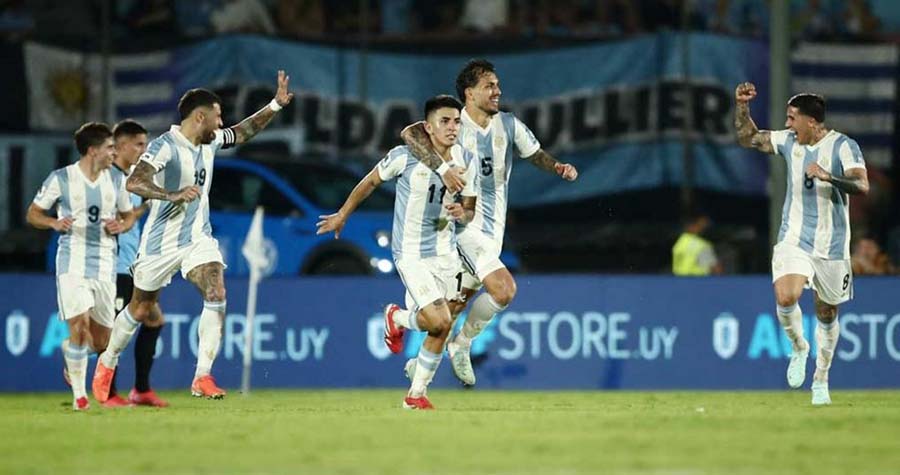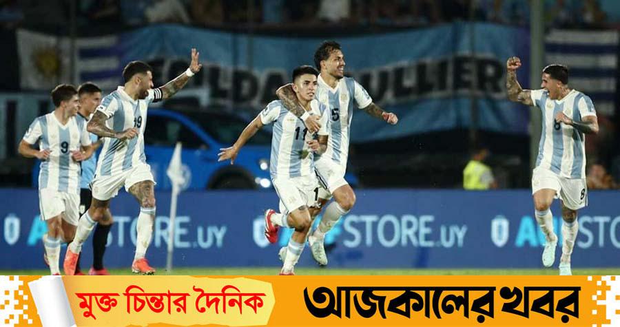 শনিবার (২২ মার্চ) মন্টেভিডিও সেন্টেনারিও স্টেডিয়ামে উরুগুয়ের বিপক্ষে মাঠে নামে আর্জেন্টিনা। এদিন মেসি, দিবালা ও লাউতারো মার্টিনেজকে ছাড়াই উরুগুয়েকে হারিয়ে ২০২৬ বিশ্বকাপ কাপের চূড়ান্ত পর্বের দিকে এগিয়ে গেল আর্জেন্টিনা। এখন প্রয়োজন ১ পয়েন্ট। যেটা আগামী বুধবার ঘরের মাঠে ব্রাজিলের বিপক্ষে নিশ্চিত করতে হবে।