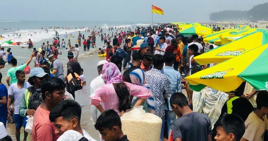মঙ্গলবার (১ এপ্রিল) দুপুরে সরেজমিনে ঘুরে দেখা যায়, ঈদের ছুটি কাটাতে বিশ্বের দীর্ঘতম সমুদ্র সৈকত কক্সবাজারে ভিড় করছেন লাখো পর্যটক। গরম উপেক্ষা করে সৈকতের সব পয়েন্টে যেন পর্যটকদের উপচে পড়া ভিড়। সমুদ্র সৈকত ছাড়াও ইনানীর পাথুরে সৈকত, পর্যটন স্পট দরিয়ানগর, হিমছড়ি, ডুলাহাজারা সাফারি পার্ক, রামুর বৌদ্ধ মন্দিরও পর্যটকে মুখরিত হয়েছে।